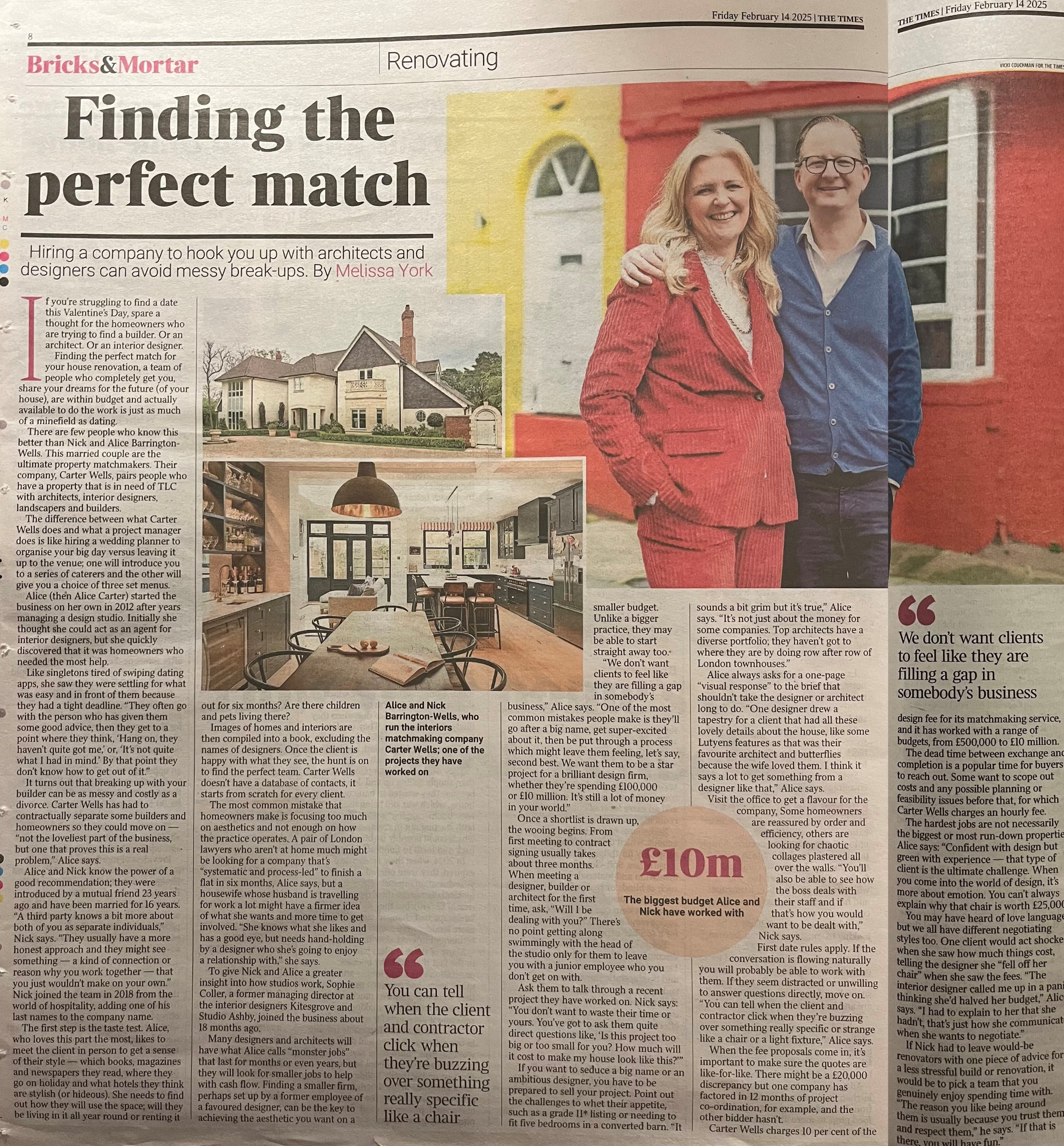 Hiring Architects and Designers with Carter Wells avoids messy mistakes - Melissa York, Assistant Property Editor at The Times and Sunday Times.